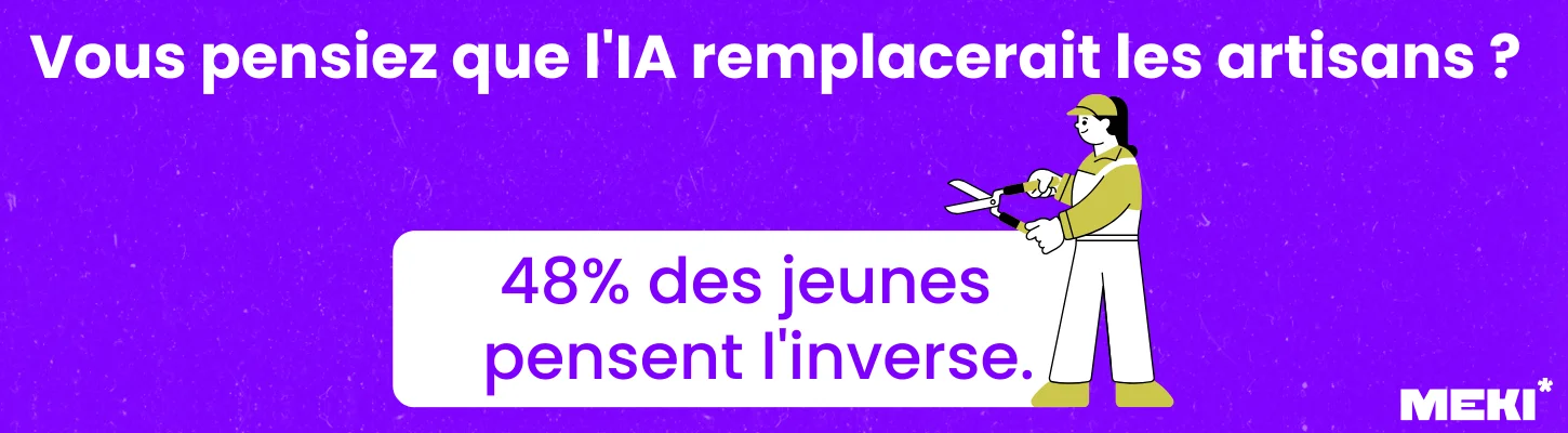 Selon une enquête menée par CMA France lors de la Semaine de l'apprentissage dans l'artisanat (23-30 janvier 2026), 48% des jeunes estiment que l'artisanat offre un travail porteur de sens, justement parce qu'il repose sur un savoir-faire humain que les machines ne peuvent pas remplacer.